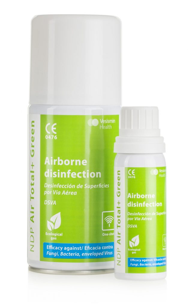 A highly effective airborne disinfectant product for clinical surfaces and equipment. Thanks to its “one-shot” total release system, it completely nebulises the disinfectant in a single application, allowing the product to reach otherwise hard to access areas.